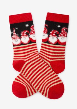 Cozy up for the holidays with the Marilyn D33 Angora Socks! These festive, warm socks are crafted with angora for luxurious softness, perfect for keeping your feet warm all winter. The design features cheerful horizontal stripes and is topped with an adorable Christmas gnome motif on the cuff in classic red and beige colors. They make a perfect stocking stuffer or a charming addition to your holiday loungewear.